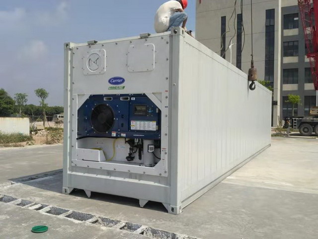 冷藏集裝箱是一種適合各種運(yùn)輸?shù)募b箱,可以長(zhǎng)途運(yùn)輸。它的制冷機(jī)組功率大概五六千瓦,只比家用柜式空調(diào)高一點(diǎn)點(diǎn)。它的主要功能是制冷保溫,有一點(diǎn)點(diǎn)的冷凍能力,但是夏天來(lái)了,這個(gè)冷凍能力幾乎不起作用了。因此,為了保證貨物在儲(chǔ)存中的安全,必須在包裝前將貨物預(yù)冷到要求的溫度。
